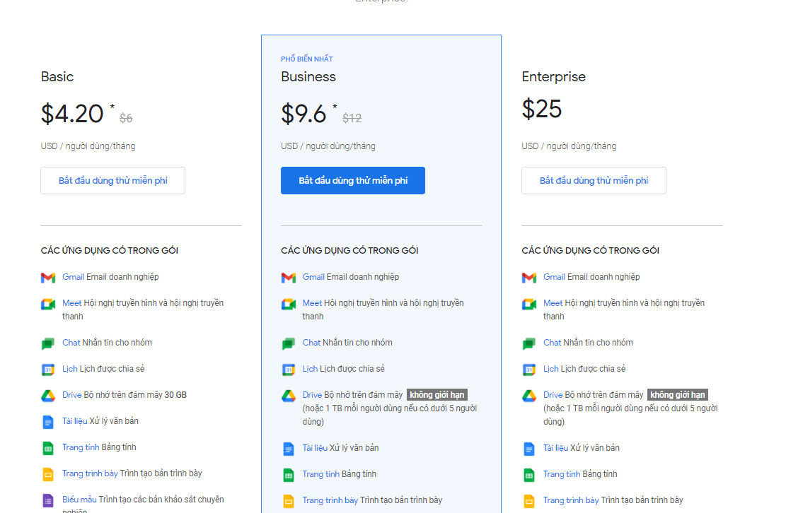 Hình ảnh chụp gói dịch vụ G Suite Business